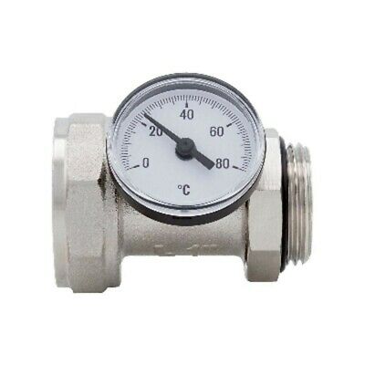 Description Corps en laiton nickelé. Joint torique en NBR. Échelle de thermomètre: 0 ° C à 80 ° C Diamètre du thermomètre: mm.40. Température de fonctionnement maximale: 80 ° C Raccord fileté ISO228 (équivalent à DIN EN ISO 228 et BS EN ISO 228).